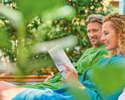Pflegebad auf der Softpackliege nach Wahl (ca. 25 Min.), Aroma-Rückenmassage (ca. 20 Min.) und ein Genießeressen mit zwei Getränken im Venite-Restaurant. Inkl. Tageskarte für alle Bereiche und Leih-Bademantel.
